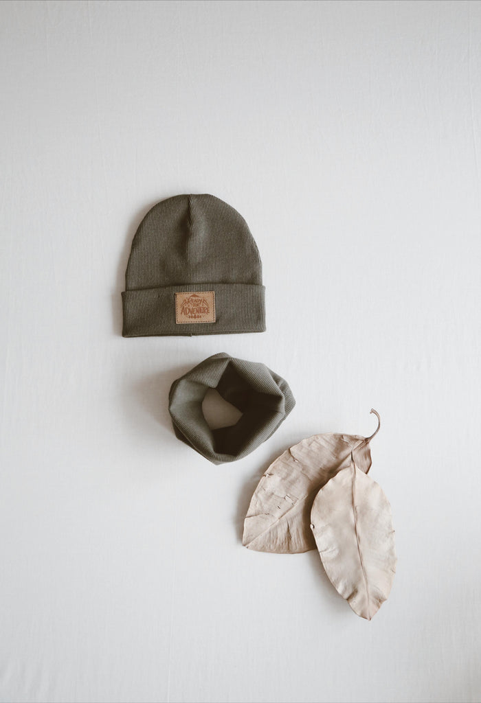 Beanie set with neck warmer (kaki)