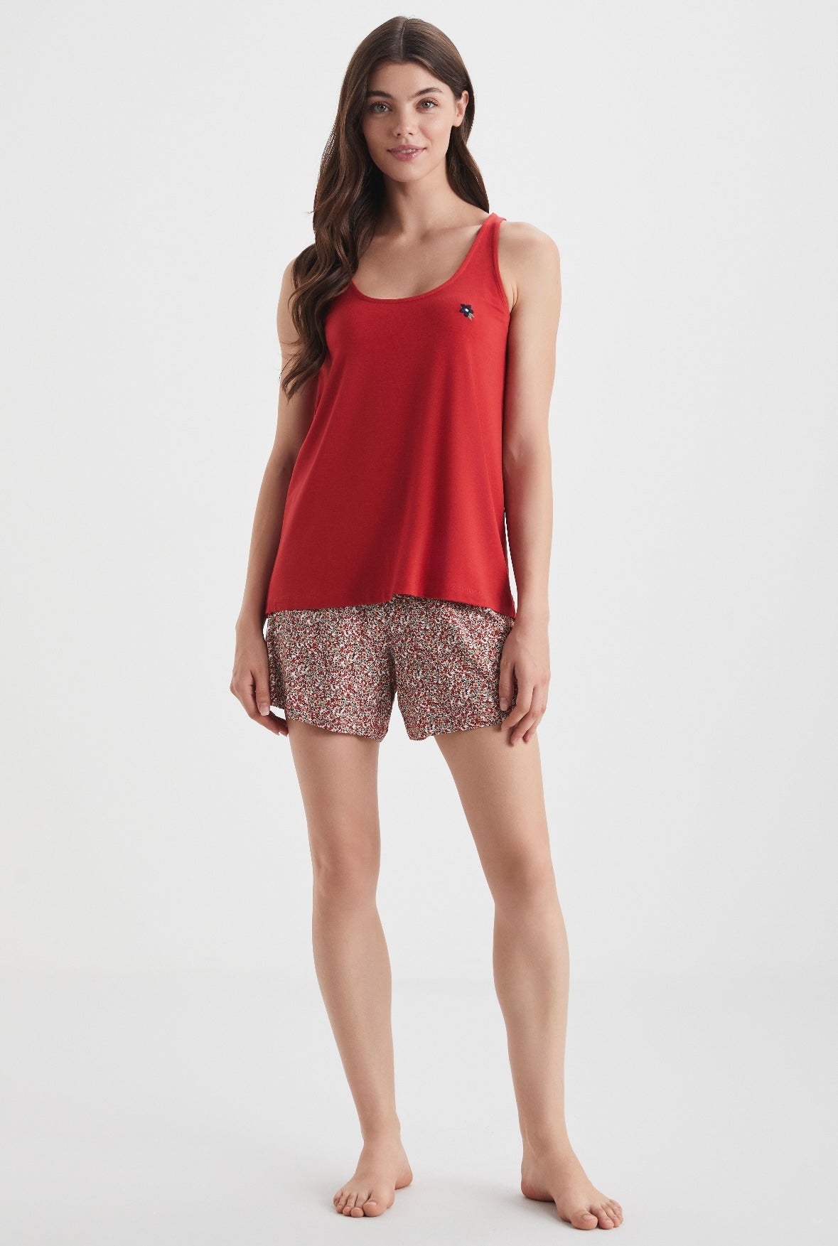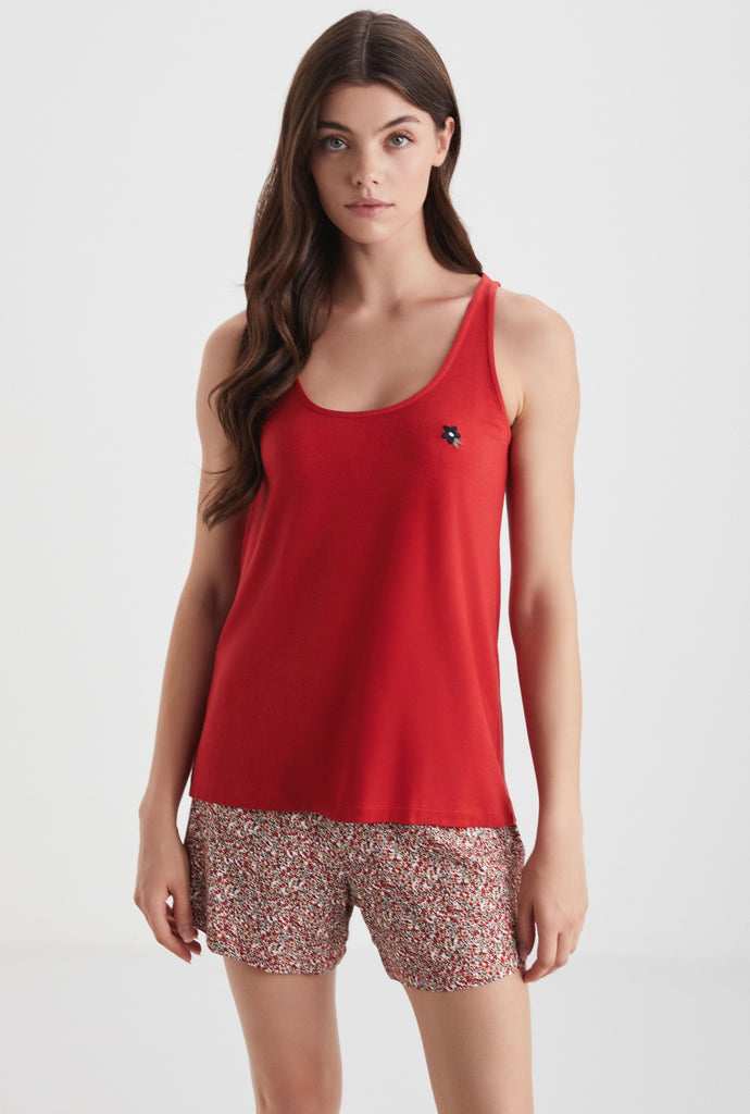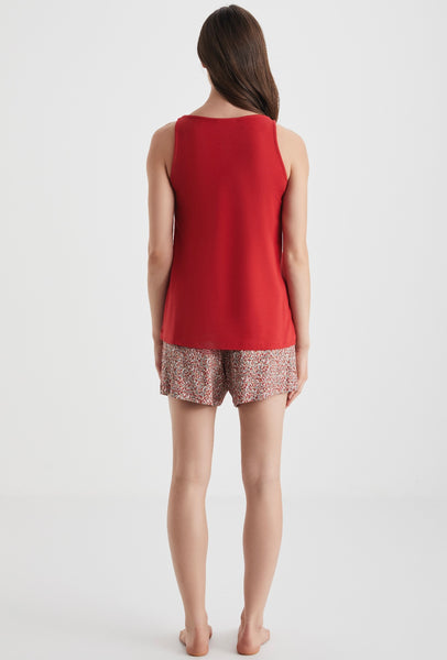 Red floral short set